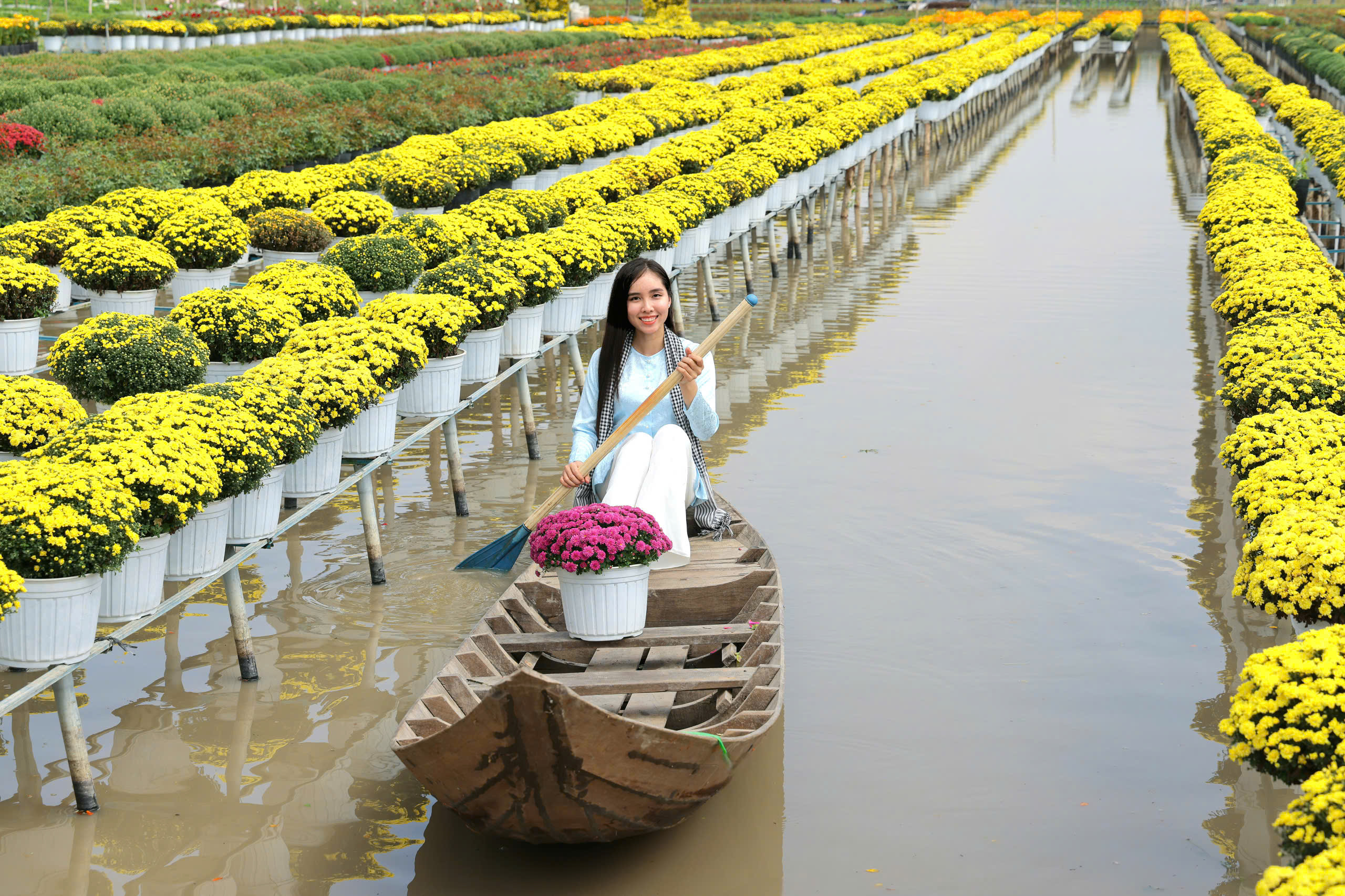 Trải nghiệm dòng sông hoa tại vườn hoa kiểng của ông Giàu