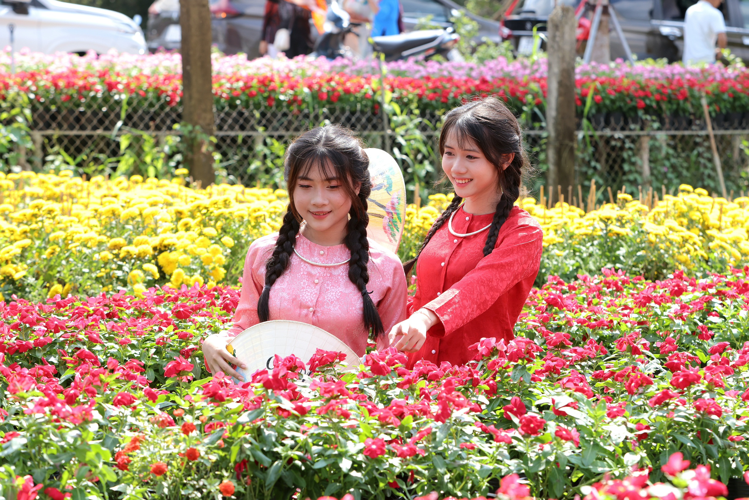 Hai du khách trẻ đến từ TP.HCM là Hải Yến, Quỳnh Anh không giấu được sự thích thú khi lần đầu đặt chân đến vườn hoa. Trong trang phục áo bà ba, khăn rằn, nón lá, hai cô gái "choáng ngợp" trước quy mô và cách bài trí công phu của vườn hoa kiểng. "Tụi em thấy như được hóa thân thành thiếu nữ Nam bộ xưa, vừa chụp ảnh đẹp vừa hiểu thêm về nghề trồng hoa truyền thống", Quỳnh Anh nói.