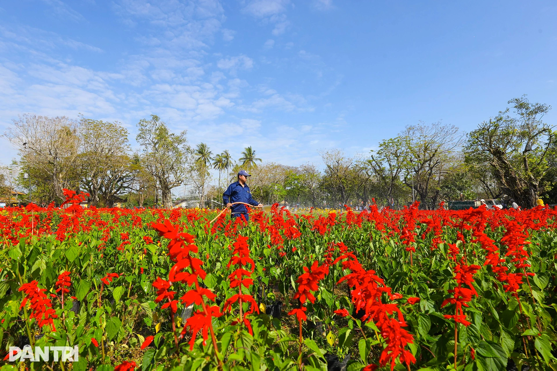 Hơn 5 vạn chậu hoa rực rỡ khoe sắc trước Quốc Tử Giám, cạnh cửa Thượng Tứ (phường Phú Xuân), đã vẽ nên một bức tranh hoa sen sống động giữa lòng Cố đô.