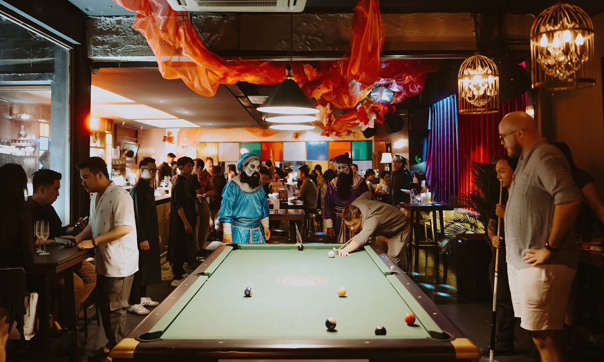 Quán bar bố trí không gian cho khách tham gia các trò chơi tương tác.