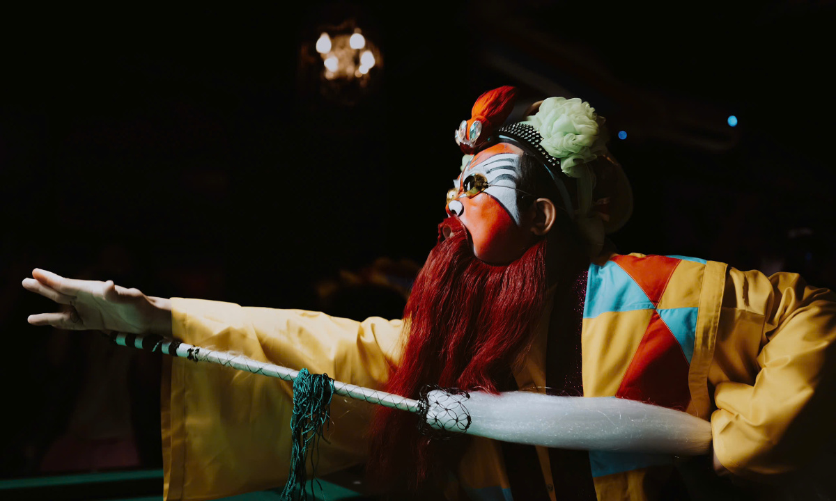 Nam diễn viên hóa thân vào vai Pháp sư Dư Hồng, một nhân vật phản diện của vở "Lưu Kim Đính giải giá Thọ Châu". Trước giờ diễn, anh tự họa mặt và chuẩn bị phục trang khoảng hai tiếng.