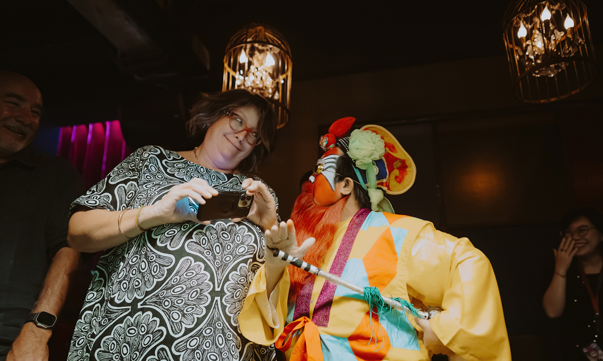 Bà Robyn Balter (ảnh), du khách Australia, tình cờ biết đến quán bar qua mạng xã hội khi đến TP HCM hồi tháng 8. Bà Robyn bất ngờ và cảm thấy may mắn vì đến đúng ngày quán bar diễn hát bội.