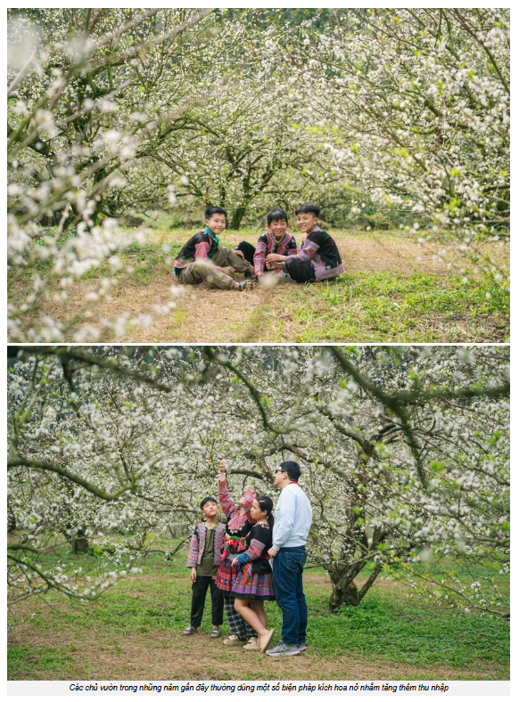Anh Tráng A Đua, chủ một vườn mận tại thung lũng Nà Ka, cho biết một phần do thời tiết thay đổi, cộng thêm việc nhiều nhà vườn chủ động áp dụng biện pháp kích hoa để phục vụ du khách đã khiến những đợt hoa nở sớm xuất hiện thường xuyên hơn. Trước đây, Nà Ka vốn chỉ là vùng trồng mận của người dân địa phương, còn giờ, nhiều chủ vườn đã trang bị thêm dịch vụ như cho thuê trang phục dân tộc, lều trại hay không gian để du khách cắm trại và thong thả ngắm hoa.