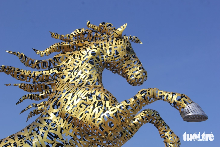 Mô hình linh vật ngựa được làm bằng kim loại, mang hình dáng một chú ngựa đang tung vó mạnh mẽ. Linh vật do nghệ nhân Đinh Văn Tâm ở Quảng Trị chế tác.
