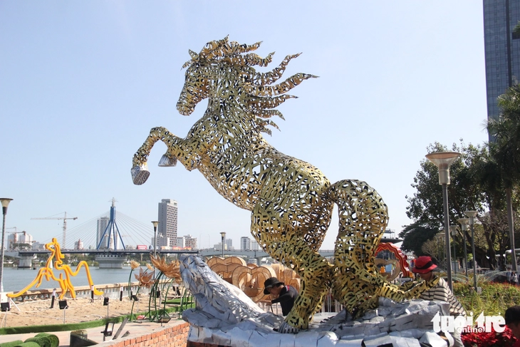 Trong số các vị trí trang trí, tâm điểm năm nay là linh vật ngựa đang dựng trên đường Bạch Đằng, đoạn trước Bảo tàng Đà Nẵng (tòa nhà Đốc Lý).