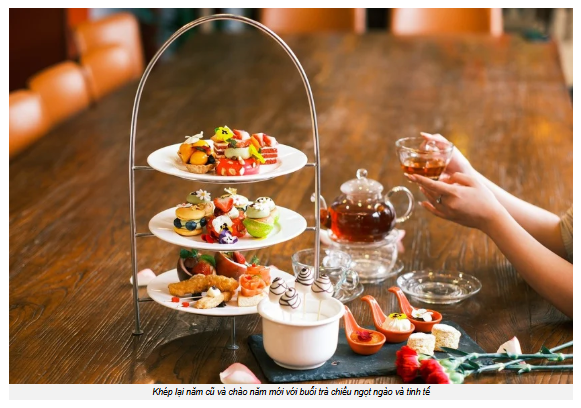 Trà chiều năm mới phục vụ từ 01/12 đến 31/12/2025, từ 14:00 đến 18:00 tại Food Exchange và Craft B&R. Mỗi set có giá 295,000 VND++ và phục vụ từ 2 khách, mang đến khoảnh khắc thư giãn, thưởng thức trà và những món ngọt tinh tế trong không gian ấm áp, phù hợp cho các buổi hẹn hò hay gặp gỡ bạn bè cuối năm.