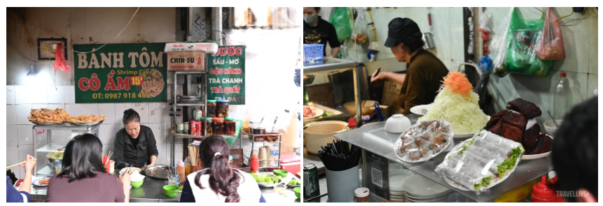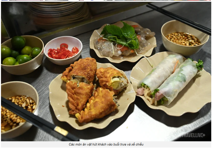Vào khung giờ 11h–14h, lượng khách tăng mạnh. Nhân viên văn phòng tranh thủ ghé ăn nhanh, sinh viên tụ tập trò chuyện, khách du lịch tò mò khám phá “thiên đường ẩm thực” phố cổ.