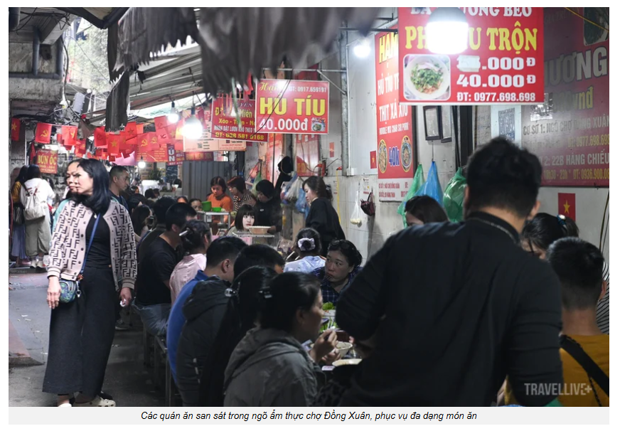 Không ít du khách quốc tế tìm đến ngõ ẩm thực chợ Đồng Xuân để trải nghiệm ẩm thực đường phố Việt Nam theo cách gần gũi. Ngồi trên những chiếc ghế nhựa thấp giữa dòng người qua lại, họ cảm nhận phong cách ăn uống giản dị, đời thường. Nhiều du khách bày tỏ ấn tượng với hương vị đậm đà, cách nêm nếm đặc trưng và sự đa dạng của các món ăn tại đây.