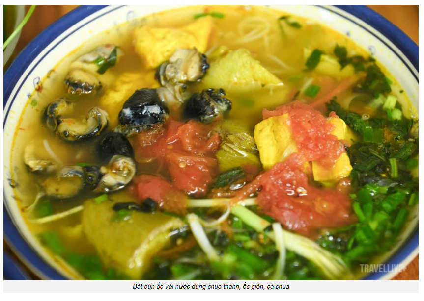 Bát bún ốc ở đây gây ấn tượng bởi vị nước dùng thanh nhẹ, chua dịu của giấm bỗng, kết hợp cùng ốc giòn, cà chua mềm và rau sống tươi xanh. Công thức được gìn giữ suốt nhiều thập kỷ, tạo nên hương vị đặc trưng khó trộn lẫn.